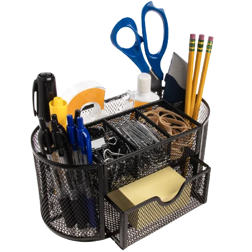 • Use for scissors, tape, staples, flash drives, erasers, rubber bands, white out, rulers, pens, pencils, paper clips, thumb tacks, highlighters, markers, glue